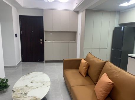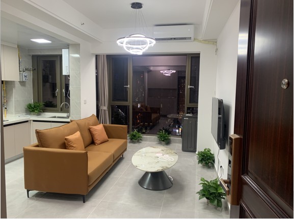 设计理念:本案业主出租硬装上做了微调整,客厅阳台,客厅厨房打通,开放式厨房岛台餐桌靠背沙发,增加整体空间,重新布局,动线流畅,视野开阔,简约实用,增加了收纳和储物空间。